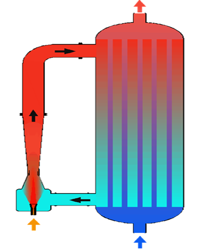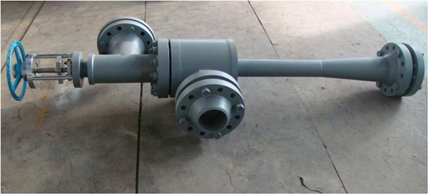 合成塔開工用“汽—水”噴射加熱器:用以在啟動階段對反應物進行預熱。為了實現變速率加熱,我們通常將噴射器設計成自動或人工可調結構的。這類結構的噴射器常用來需要經常變負荷運行的裝置中。