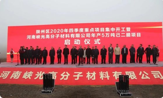 11月17日,陜州區2020年四季度重點項目集中開工暨河南峽光高分子材料有限公司年產5萬噸己二腈項目開工儀式在區產業集聚區舉行。