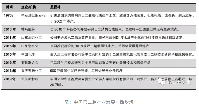 值得期待的是,國內已有眾多企業開始布局己二腈這一空白領域。經歷了一段時間的技術積累,已有一些國內企業實現了技術突破。