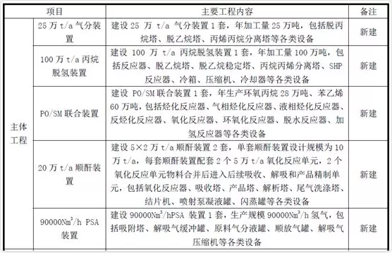 項(xiàng)目建設(shè)內(nèi)容:主要建設(shè)1套25萬(wàn)噸/年氣分裝置、1套100萬(wàn)噸/年丙烷脫氫裝置、1套28/60萬(wàn)噸/年P(guān)O/SM聯(lián)合裝置、2套5×2萬(wàn)t/a順酐裝置和1套9000Nm3/hPSA裝置及配套的公輔工程和環(huán)保工程。