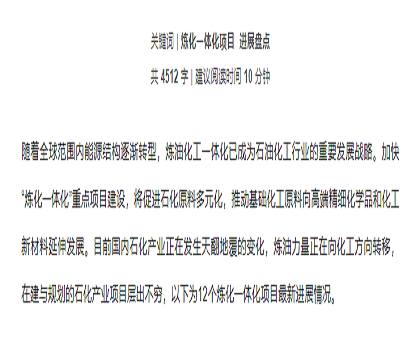 • 12個大煉化一體項目最新進展大盤點
